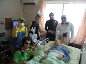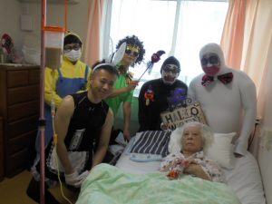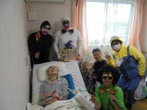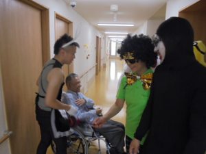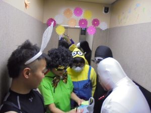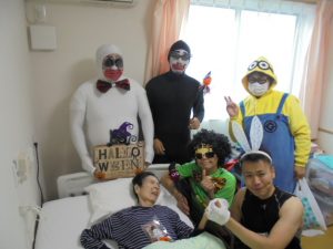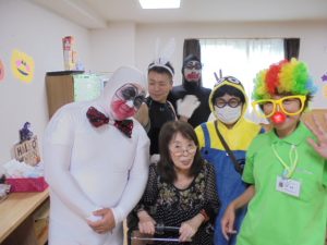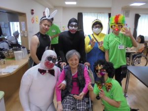 ハロウィンというよりも…仮装大会のような感じですね~!来年も行いますので、楽しみにお待ちください~