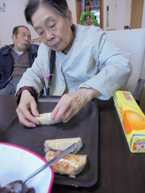 どら焼きをみなさんで楽しそうに作られていましたよ~ 「うん、うまい!!」