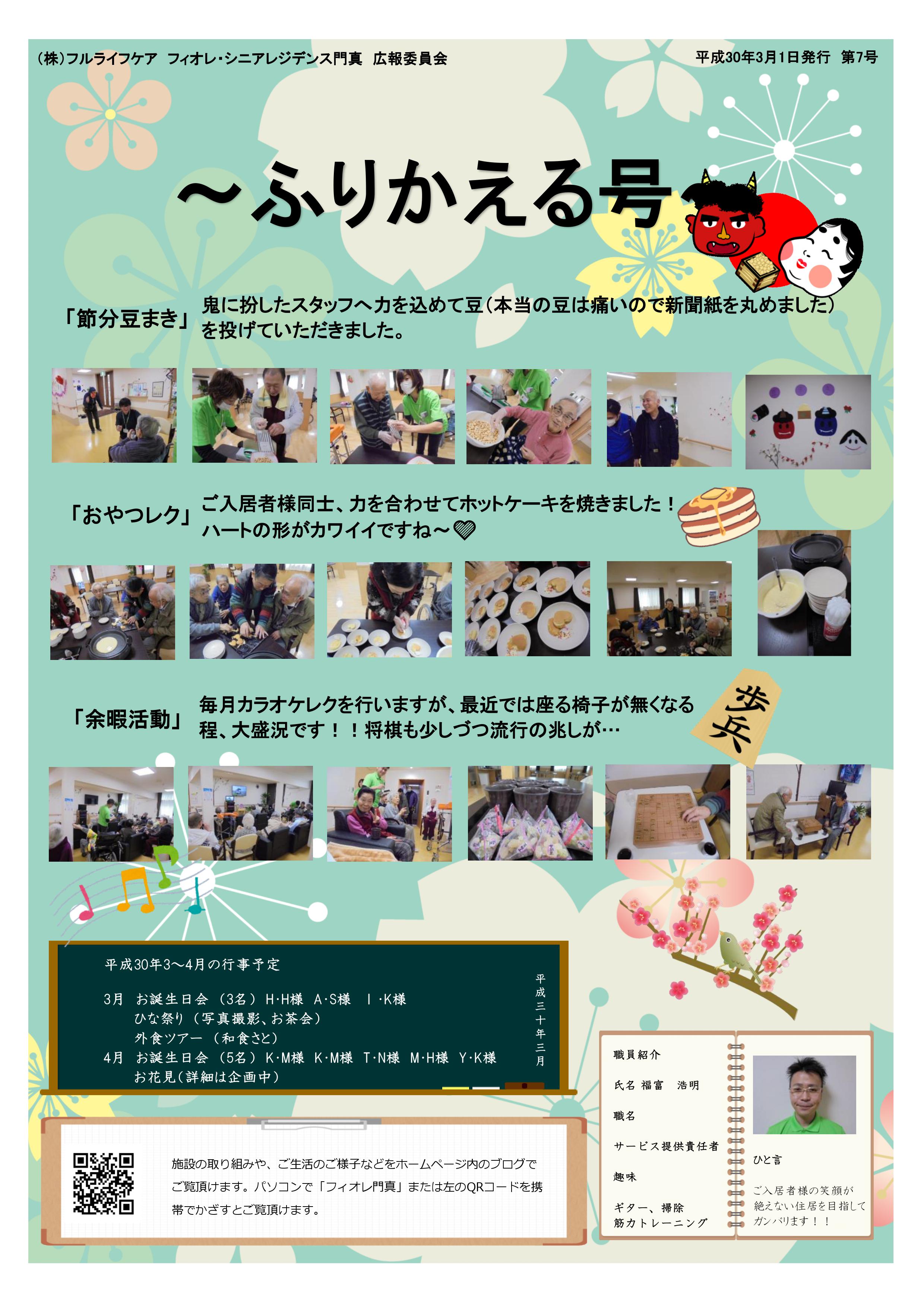 フィオレ・シニアレジデンス門真の3月広報誌ができあがりました!!
