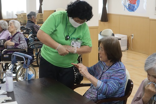 お茶を待っている間にいい匂いのする美容液を皆様へ塗布していきました♡