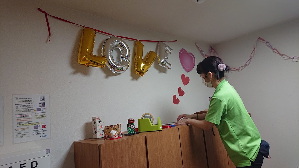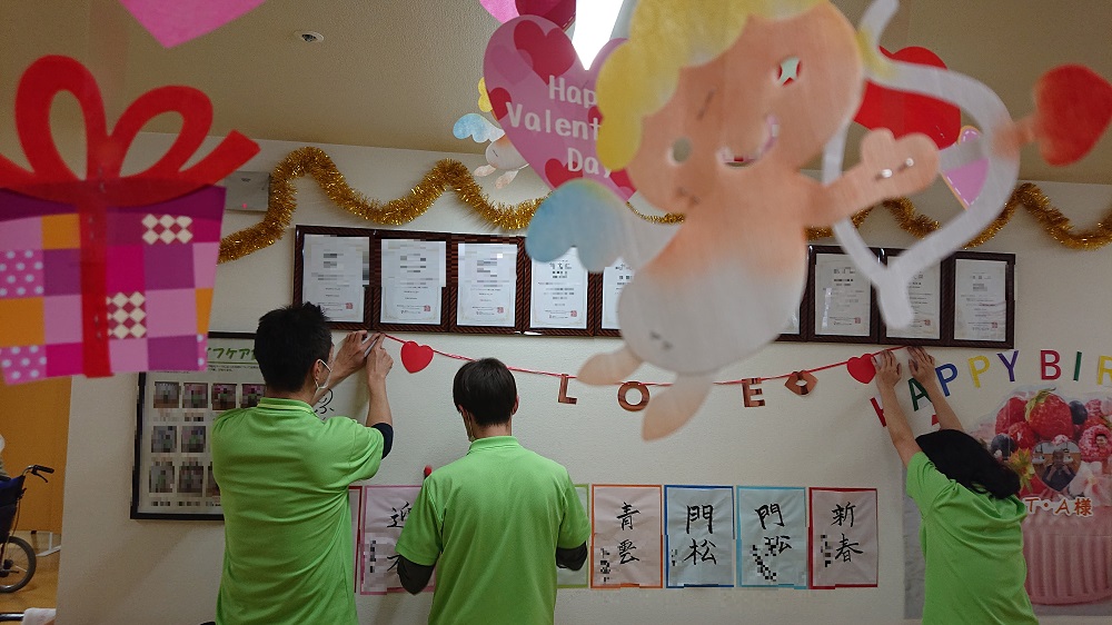 というわけで、節分が終わるとすぐにバレンタインの飾り付けです!
