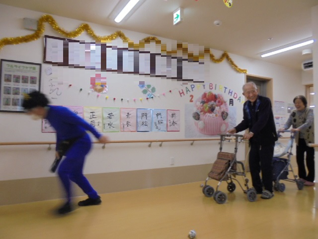 M職員さんに渡されたボールで鬼退治です!