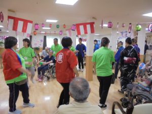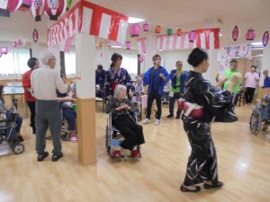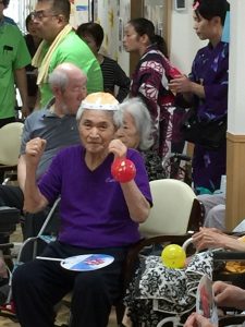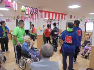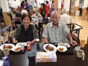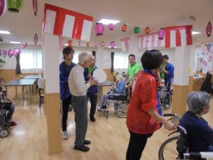 入居者様とスタッフで3曲も踊り、「あ~、お腹すいた」と焼きそばやたこ焼きをペロリ(^_-)-☆