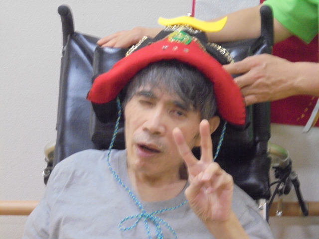 出来たてほやほや、Yタッフお手製のかぶとでハイポーズ (*^^)v