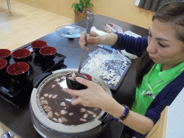 まずは本年一発目のⅮマネージャー特製おやつとしまして、元旦にぜんざいを召し上がっていただきました。