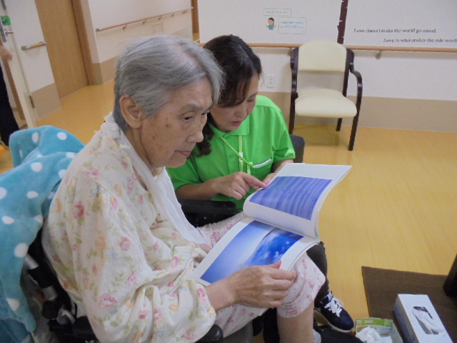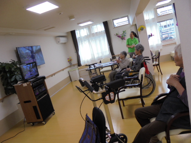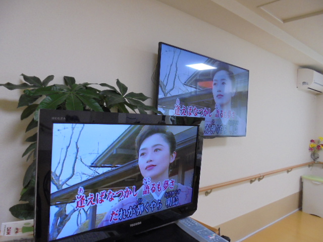ご入居者様に談話ルームにお集まりいただき、皆様でお好きな歌を