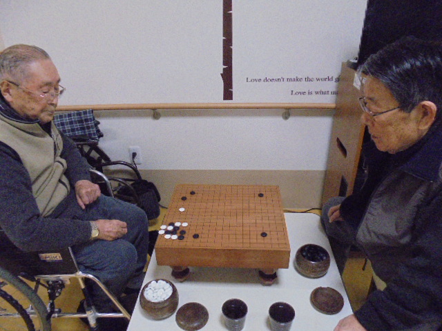 今日の昼下がり、新しくご入居されたY様とS様が碁を打っておられました。