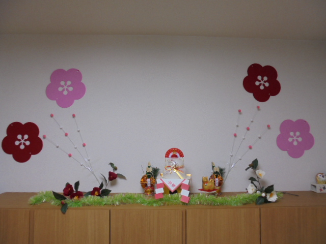 飾りつけ担当のYヘルパーが、いつものセンスを発揮して、お正月の飾りつけに奮闘中でございますっっ