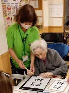 毎月書道レクをやってはいますが、書初めは年に1回のみ!