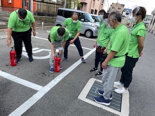 自主訓練ですが消防署から水消火器を借りて行いました。