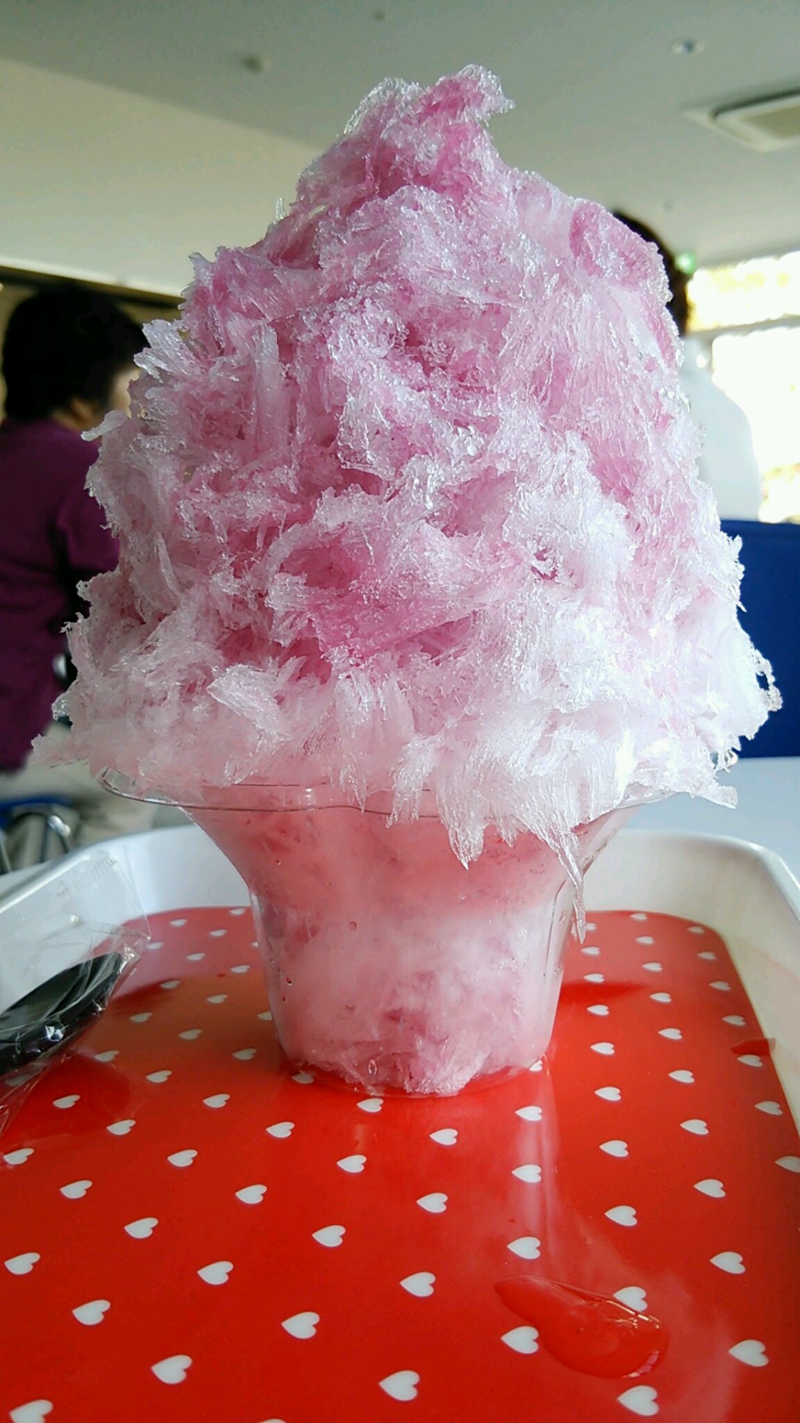 イチゴのかき🍓 下はみぞれのかき氷💛