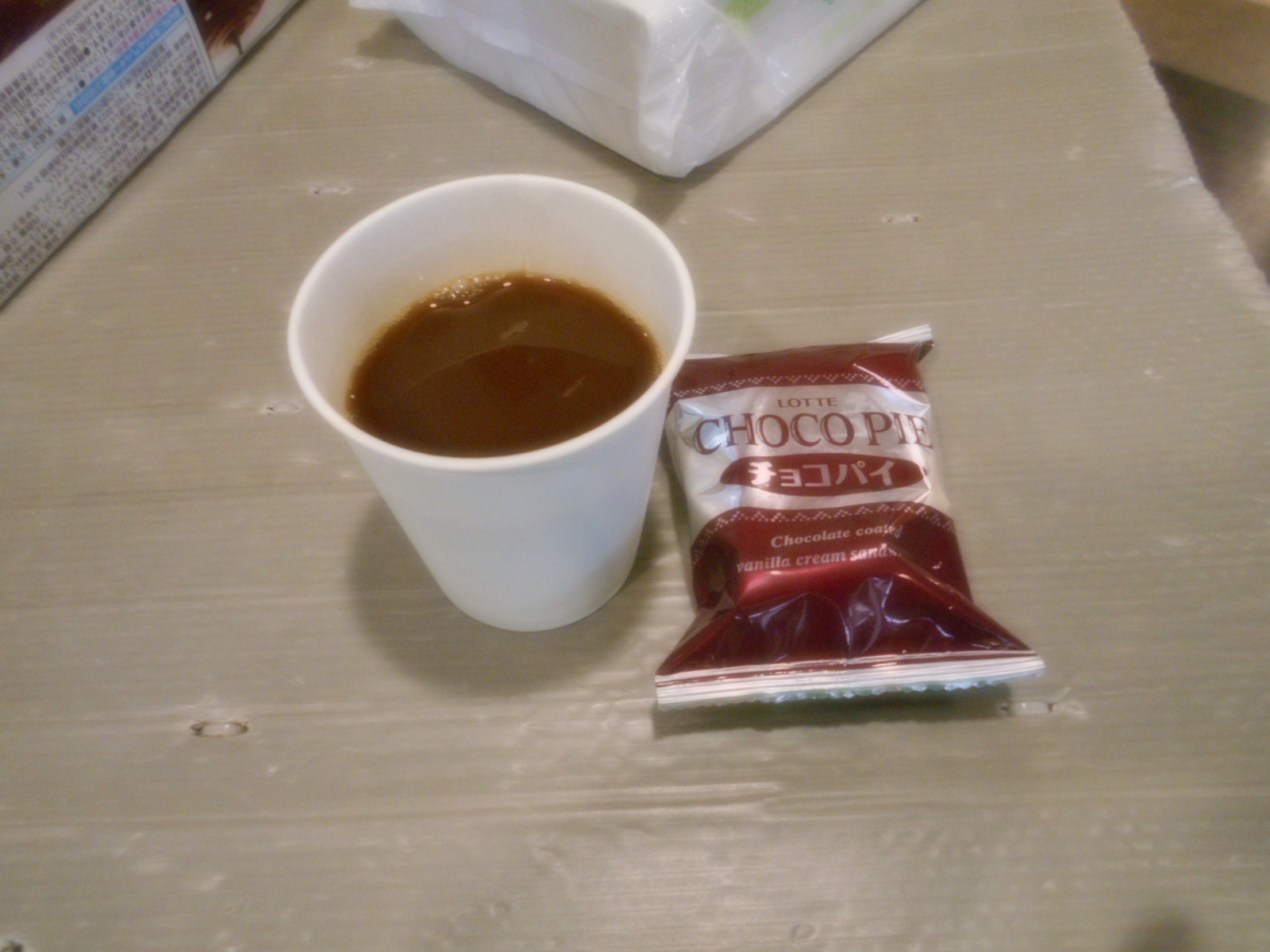 今日のメニューはアイスコーヒーとチョコパイになります♪