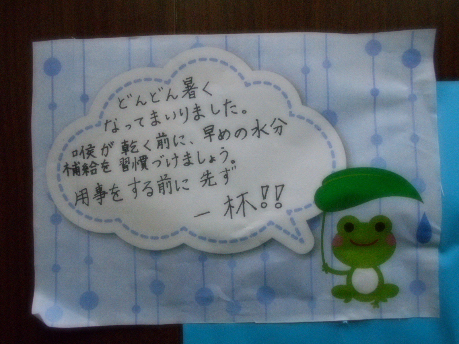 熱中症のリスクも高まるので、喉が渇く前に早めの水分補給を心掛けましょう!!