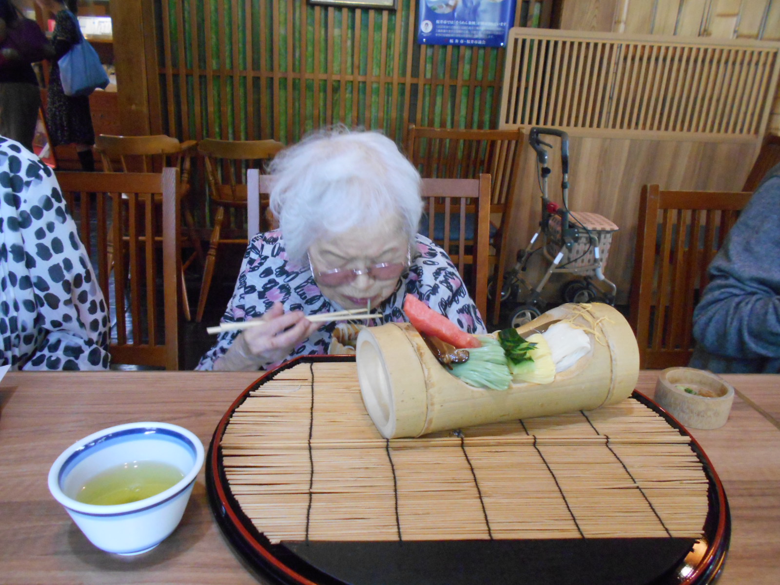 桜井市は「三輪そうめん」で有名なところです。本場のそうめんを食べに行きました。「冷たくでおいしい!!」「こんなおいしいそうめんは初めてです。」と皆さん喜んでいただけました。