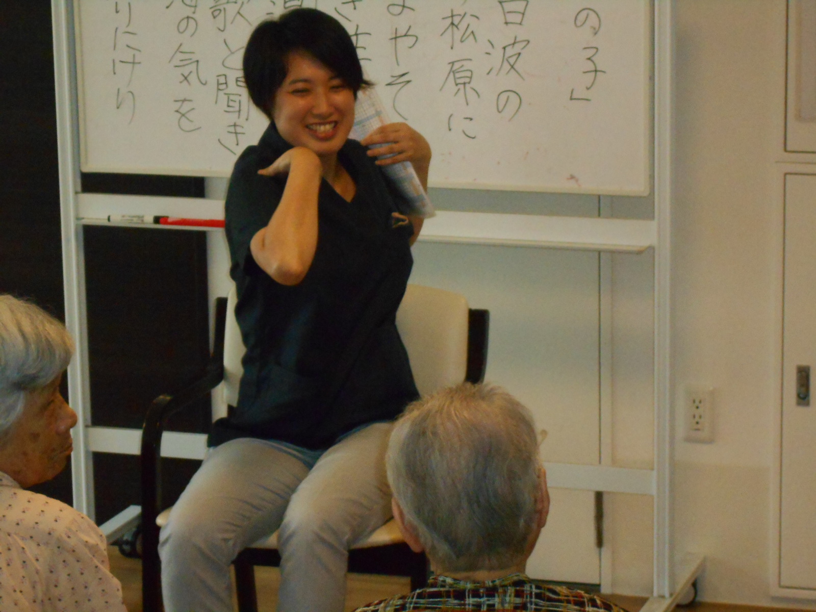 毎月恒例のリハビリ体操です。今回もK鍼灸師(年齢はひみつ)
