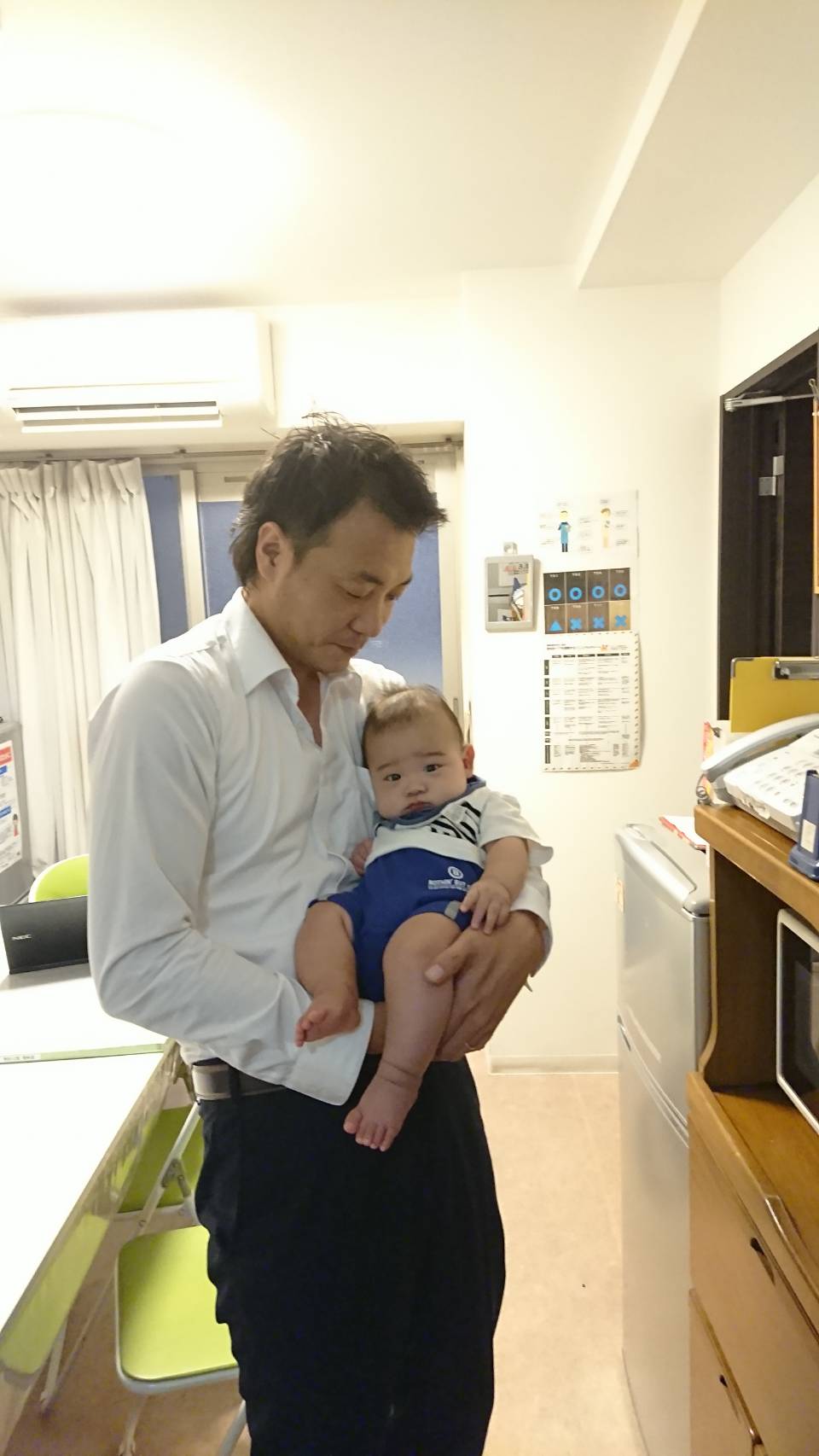 毎月第二木曜日に会議を行っております。終わった後にMサブマネージャの子どもが遊びに来ました(Mサブマネを迎えに来たそうです(^_-)-☆)Y取締役本部長が抱っこしています。いつもと違って柔らかい表情のY取締役本部長(^_-)-☆ 普段は厳しい人でも赤ちゃんには優しいです(^_-)-☆