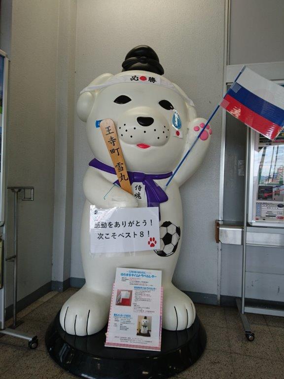 王寺駅にサッカーのユニフォームをきた「雪丸くん」が鎮座してました(^_-)-☆