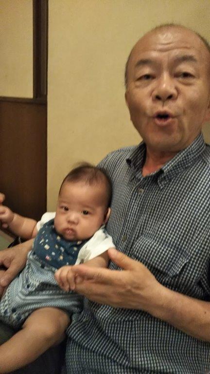 孫を抱いている感じがでているN相談員です(^_-)-☆ Mサブマネージャの息子さんです(^_-)-☆