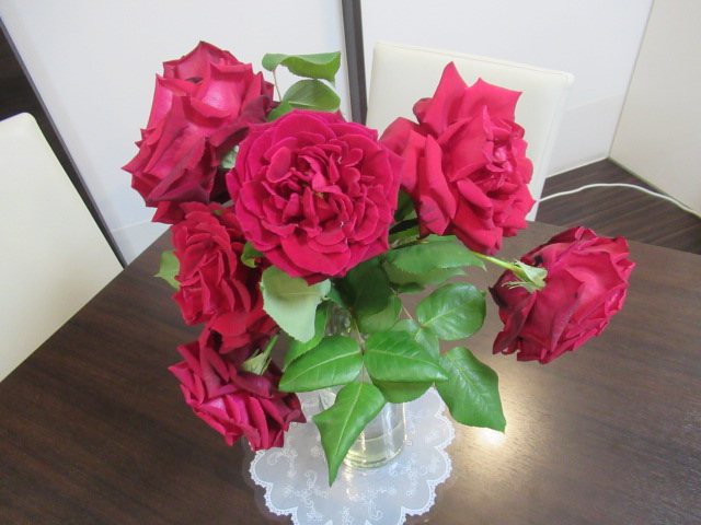 K職員が真っ赤なバラを持ってきてくれました(^^♪