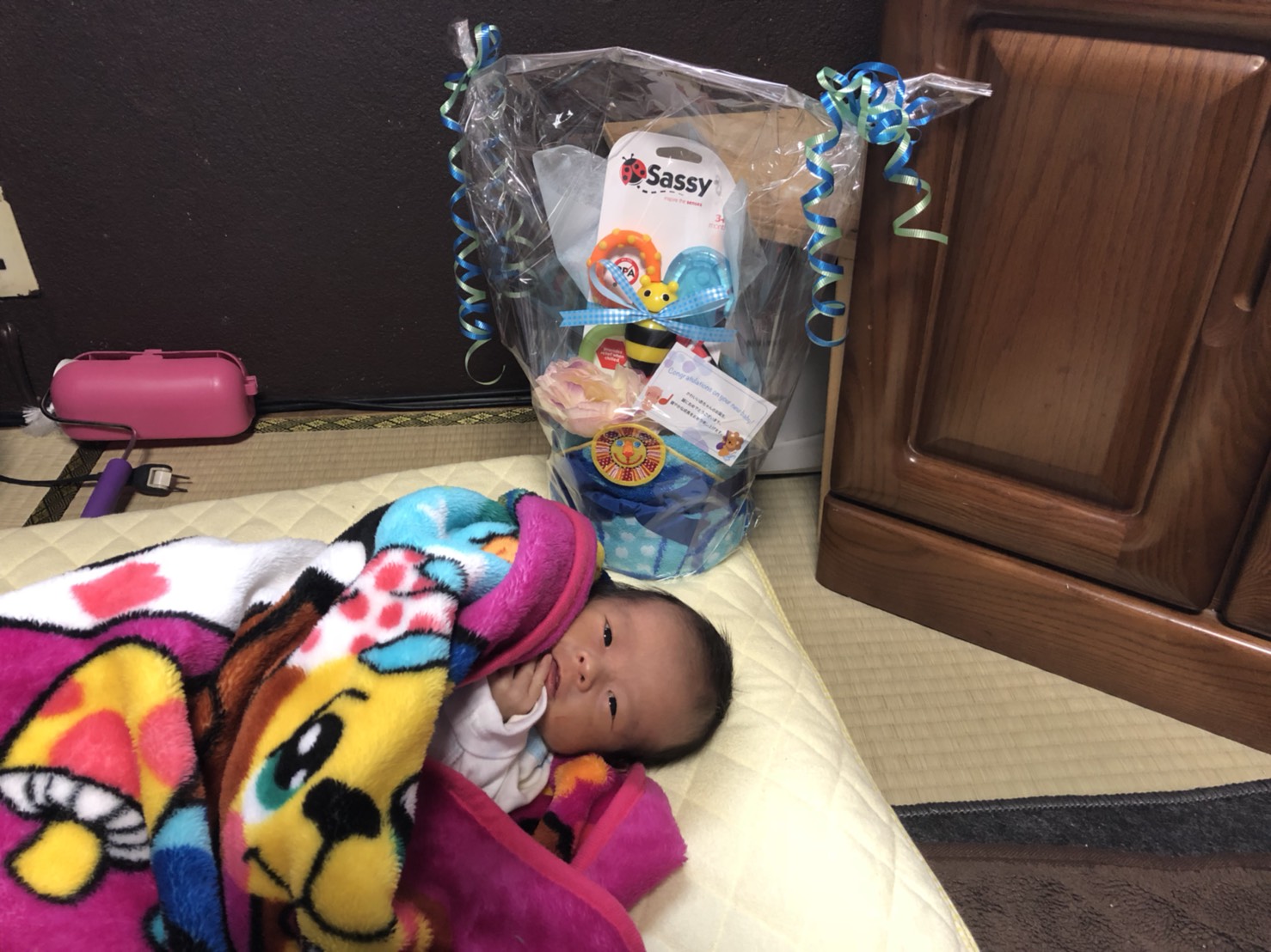 後ろにあるのは「おむつケーキ」というもので今流行っているみたいです(^_-)-☆