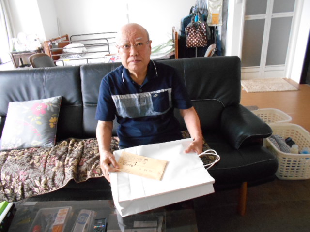T様の米寿のお祝いに河合町さんが来られました。緊張した面持ちですがうれしそうです 😆