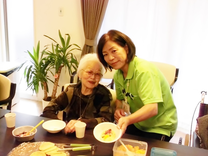 フィオレ・シニアレジデンス上牧では先日おやつレクでパンケーキを焼きました!