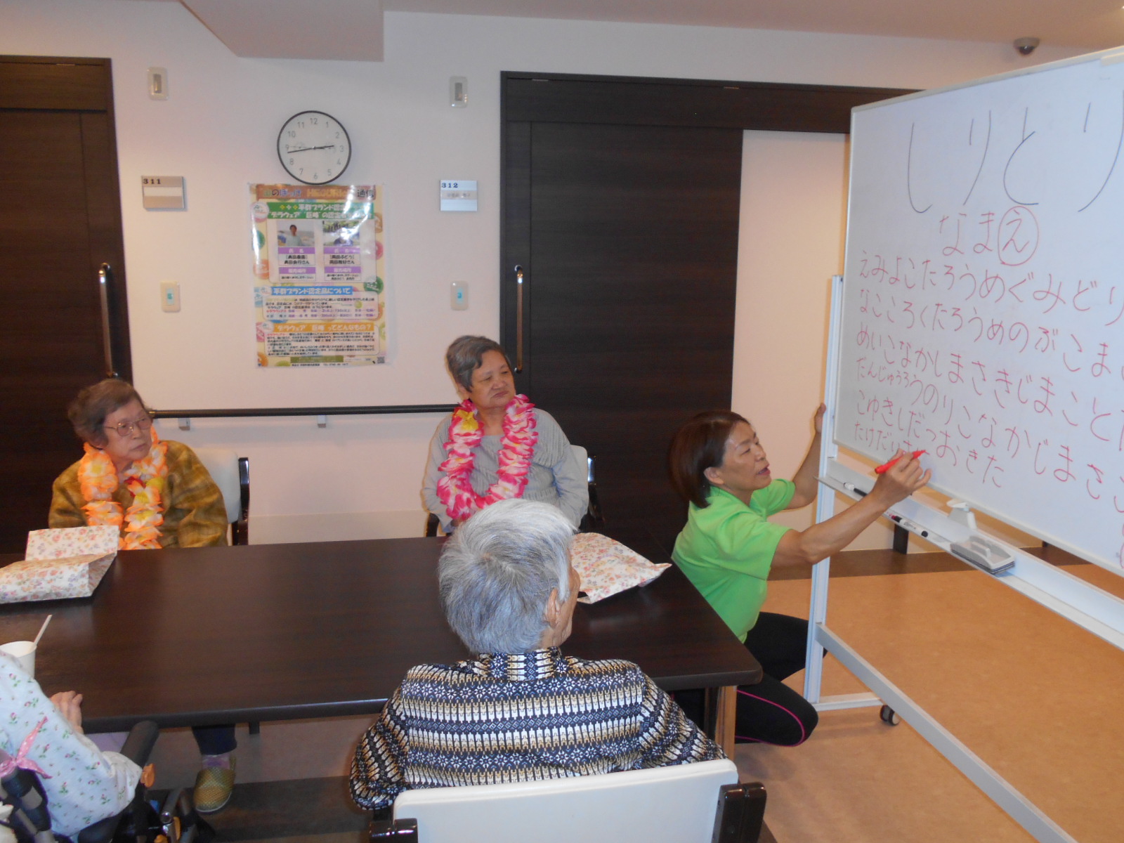 Tサ責がレクリエーションを行っております。Tサ責は「レクリエーション介護士2級」を持っています。それを生かしたレクです。皆様真剣にされています。