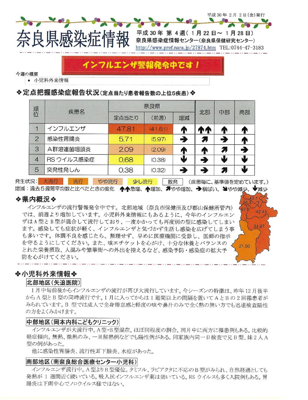 全国的にインフルエンザがはやっております。奈良県でも「インフルエンザ警報」が発令されております。手洗い・うがい・消毒が大切です。