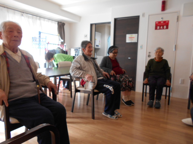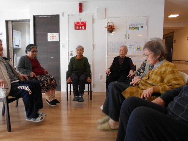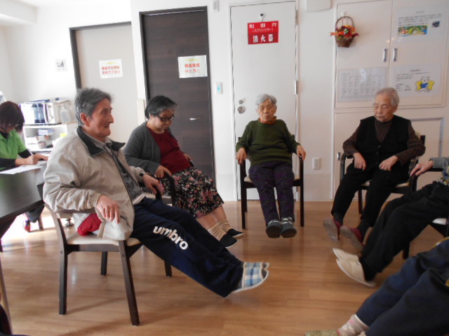 フィオレ上牧ではリハビリの体操に力を入れています。専門の知識をもった職員が体操しています。普段使わないところを使うのでみなさん真剣です。体を動かしていつまでも健康に暮らしていけるようがんばってください(^_-)-☆