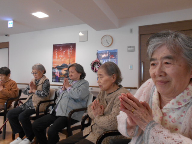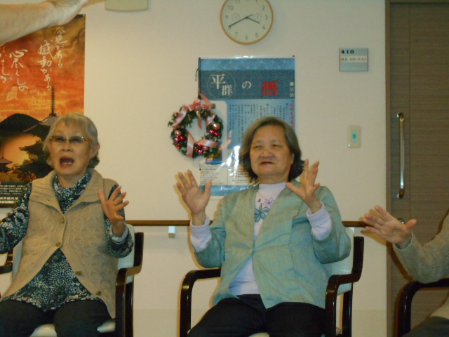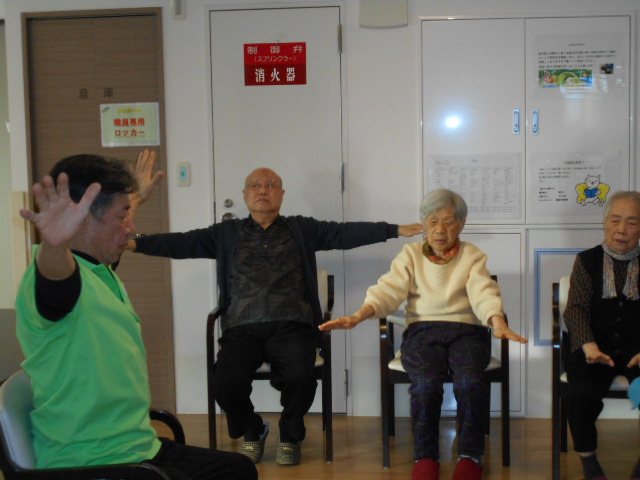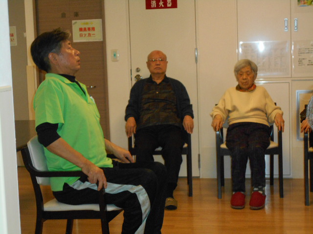 今日もリハビリ体操です。皆様頑張っておられます。「少しでも元気になりたい!!:」「近くの公園まで散歩行けるようになりたい!!」「一回は田舎に行ってみたい!!」と皆様それぞれの思いで参加されています。