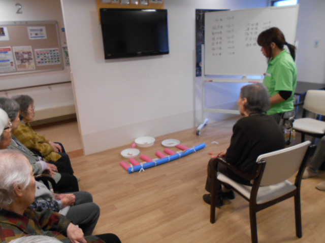 (株)フルライフケアでは全職員を対象に「レクリエーション介護士2級」を取得していってます。レクリエーション介護士2級とはレクリエーションの方法や意義・目的を勉強します。勉強が終われば「レクリエーション介護士2級」の資格が得れます。今回はレクリエーション介護士2級を取得したI職員がレクリエーションをしております。みなさん楽しそうにしています。DSCN3246 DSCN3244 DSCN3245