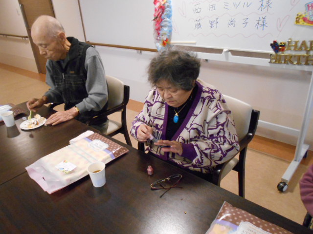 ♬最初は遠慮していた入居者様も周りを見て「私もしてほしい(^_-)-☆」とおっしゃってくださいました。
