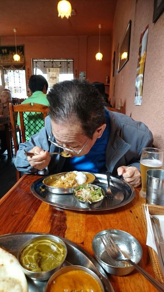 毎月恒例の外食レクです。今回は久しぶりに施設から歩いて3分(走って30秒!(^^)!)のところにあるカレー屋さんです。スリランカの人が経営しています。本場のカレーとナンを食しました。おいしかったです。入居者様も「おいしい!!」とビール片手!(^^)!に大盛です。