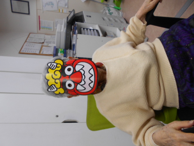 少し早い節分です。H様が鬼の面をかぶってくださっています。「似合う?」ときいてこられてたので「ばっちしです!!」(^_-)-☆DSCN3019