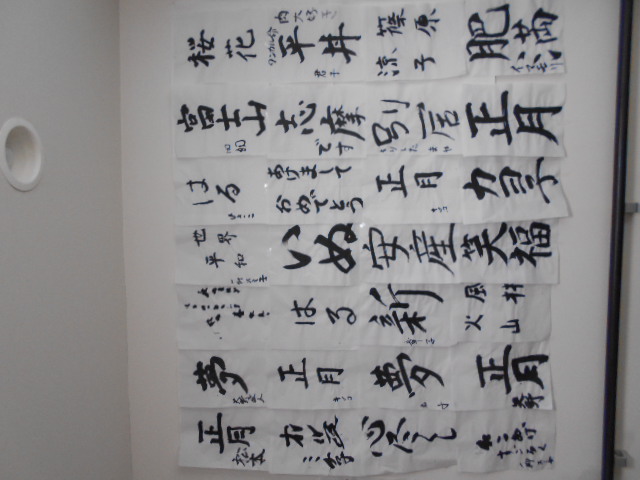 お正月の書道です。1Fホールに展示しておりますのでご来館の際にはご覧になってください。各階にも数点展示しております。