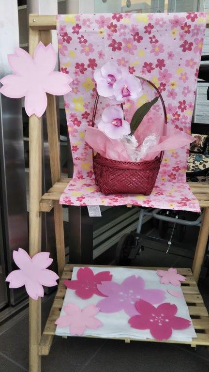 ふぃおれ上牧の玄関にも桜前線がやってきました(^_-)-☆桜は満開です🌸