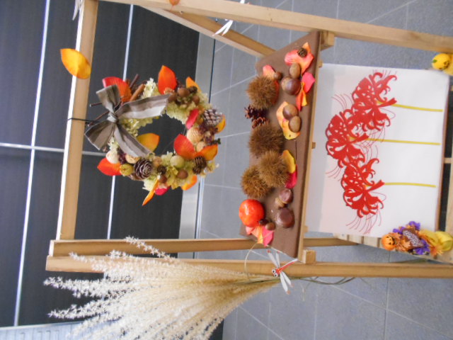 まだまだ暑いですが暦では秋となりました。暑いのも今日までで明日から雨で気温が下がってきます。体調にはきをつけてください。今回の玄関の飾りつけです。🍁秋らしくなってます🍁