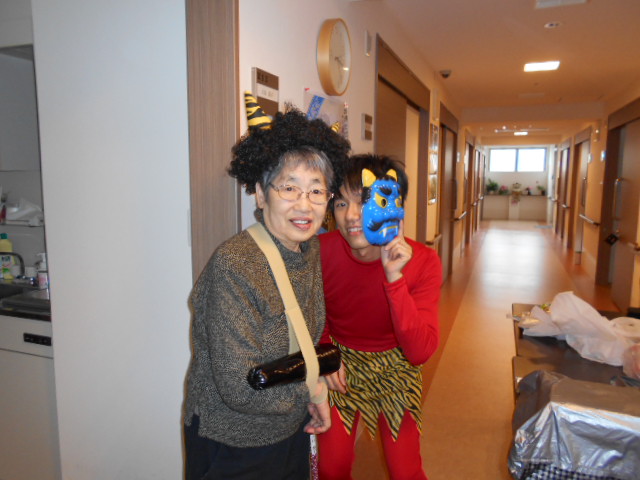 入居者様が鬼になっています。ポーズを決めております(^_-)-☆