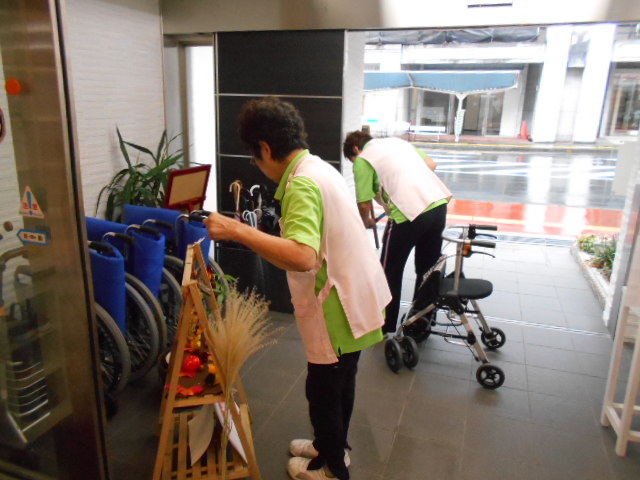 いつも入居者様のお部屋や施設内をピカピカにしてくれています。「生活空間を綺麗にすれば生活にゆとりができる!:」とH職員は話しています。「生活空間がきれいであれば心もきれいになる!!」とY職員。
