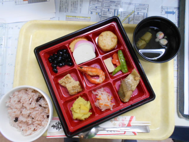 1月1日のおせち料理です。ひとつひとつが丁寧に作られていておいしかったです。入居者様も「おせち料理おいしかった(^_-)-☆」「お腹いっぱいになったわあ」「有頭海老が豪華(^_-)-☆」と大変好評でした。来年もまた味わいましょう!!