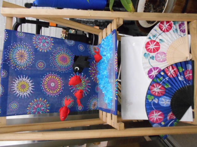 夏らしい飾りつけです。T職員が毎月色々な飾りつけを考えてくれています。暑い日が続きますが少しでも涼しさをお届けできれば幸いです。