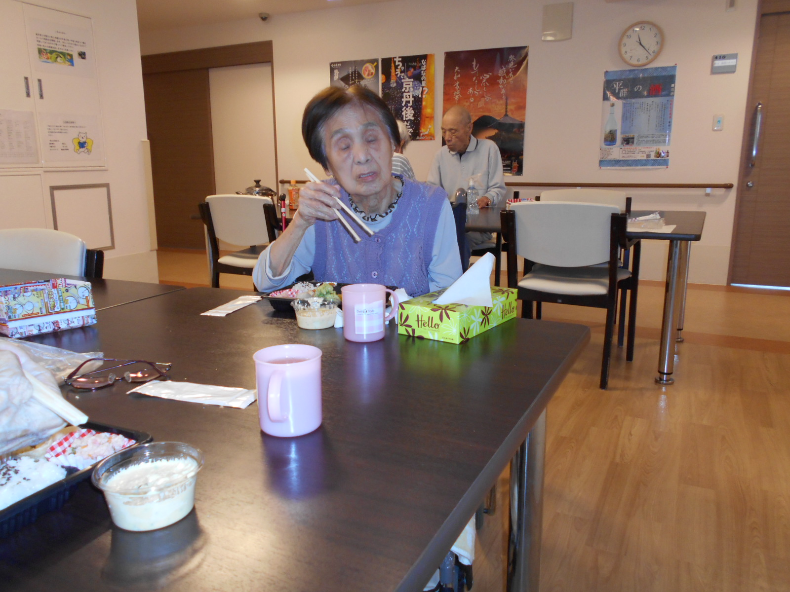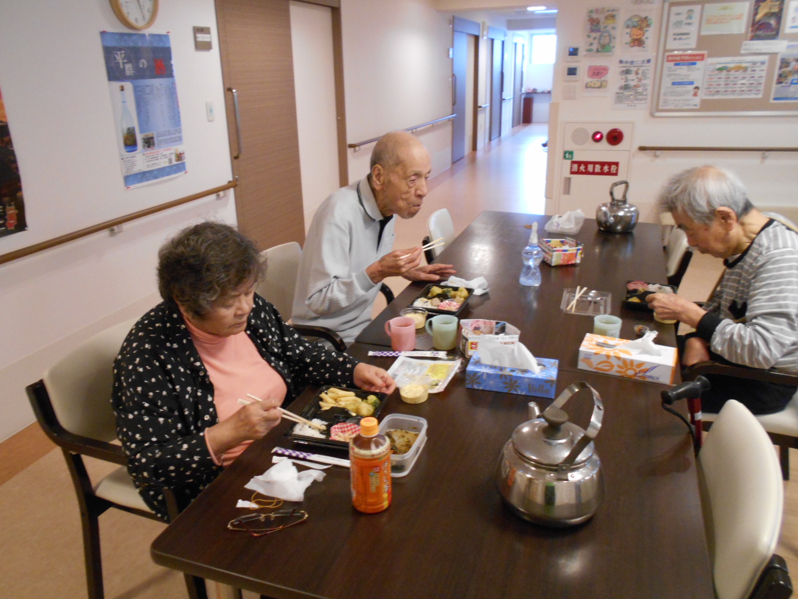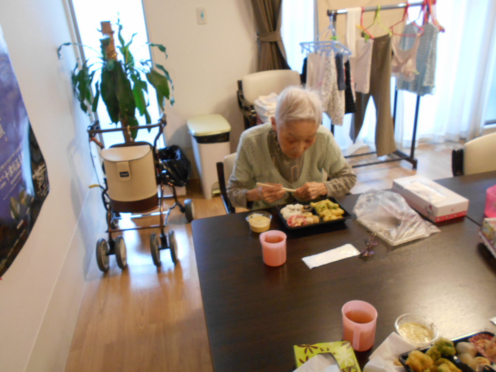 今日のお弁当レクです。前回と同じところに頼みました。皆様全部召し上がってくださいました(^_-)-☆