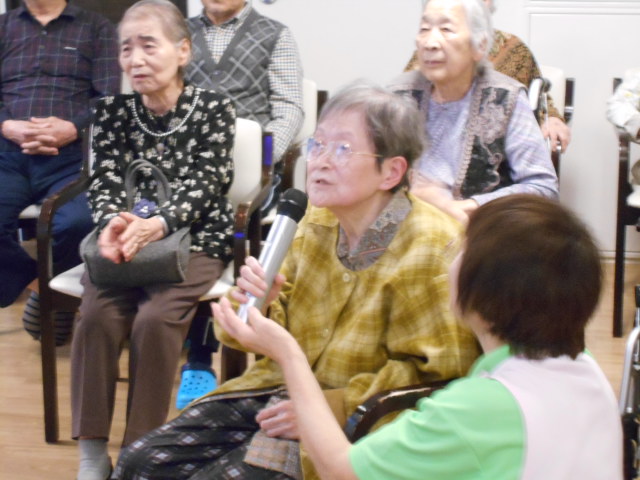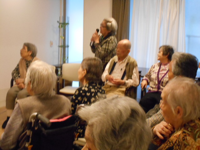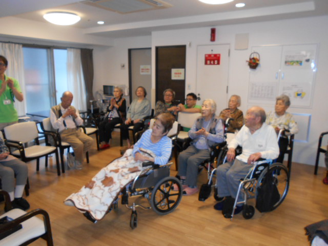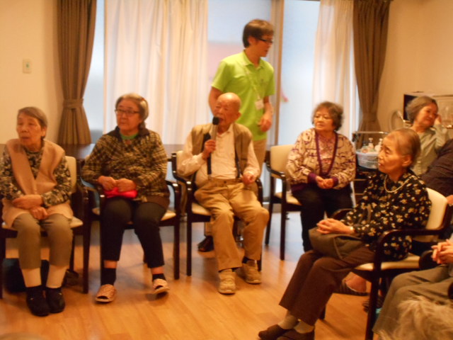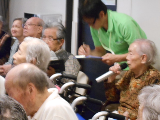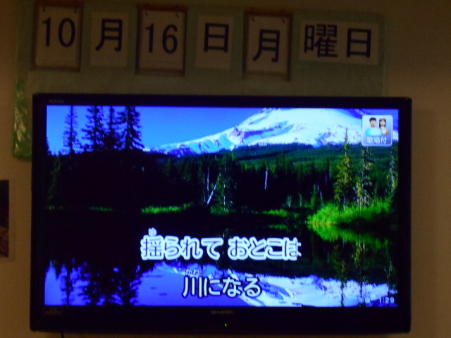 久しぶりのカラオケです。入居者のT様よりカラオケセットをお借りしております。皆様最初は「恥ずかしい」「へたやから聞くだけ」とおっしゃっていましたがおひとりが歌われると「一回歌ってみるわ!(^^)!」と曲をリクエストしてくださいました。毎月カラオケ大会を開催しますのでまた参加してくださいね!(^^)!