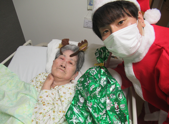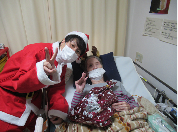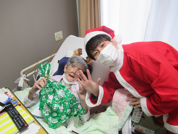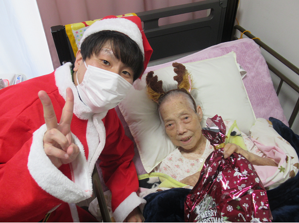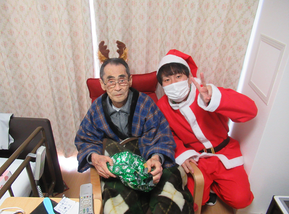 サンタ衣装を着たMリーダーが各入居者様の居室を訪問し、クリスマスプレゼントをお渡ししました♬