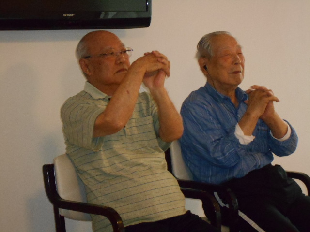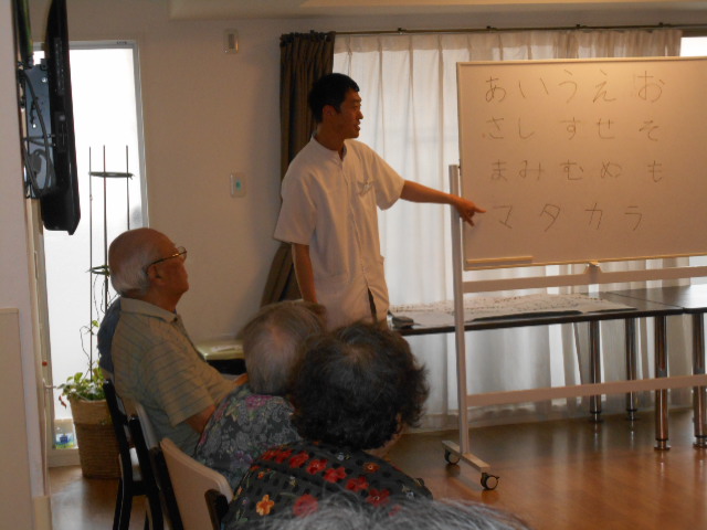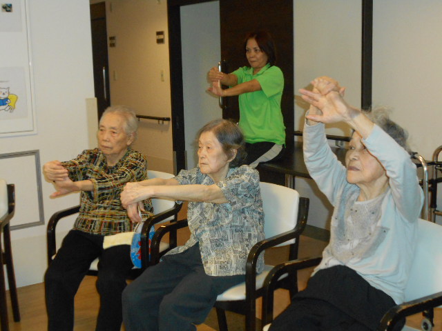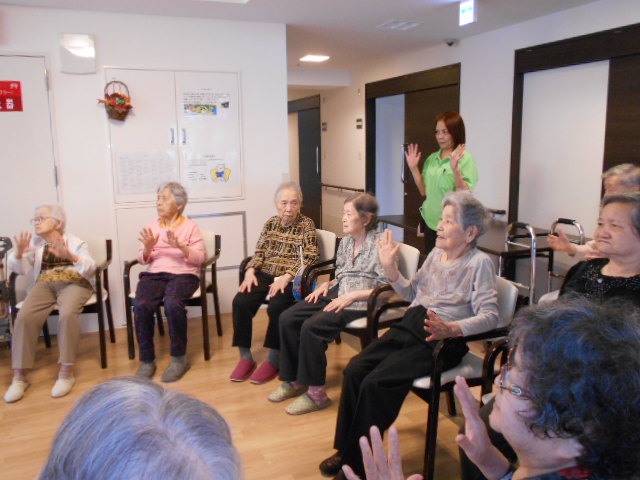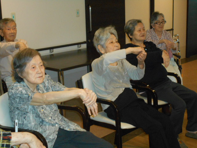 今日は月一恒例のリハビリ体操です。松田鍼灸師さんです。