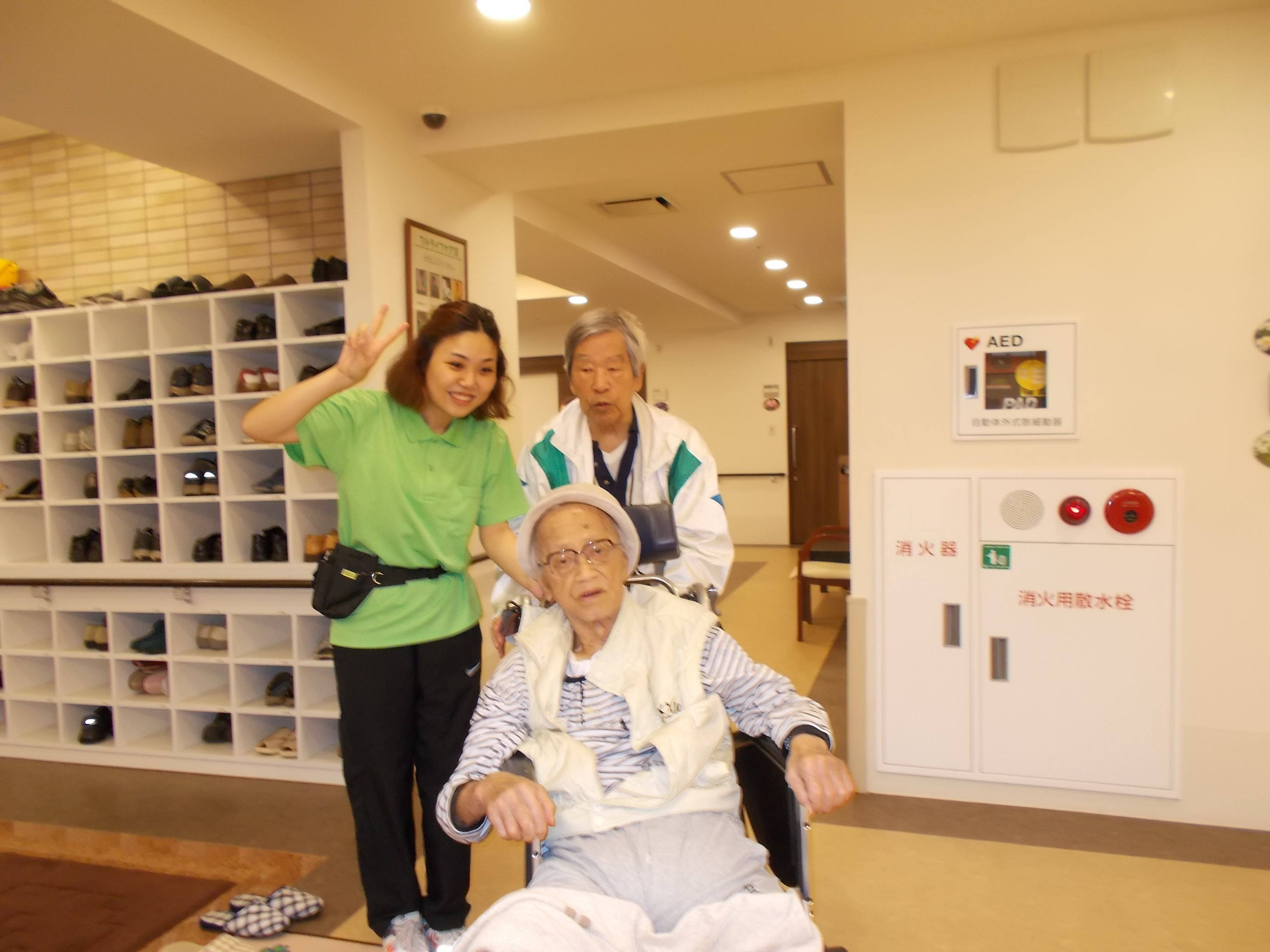 でもスタッフは明るく元気にご入居者様とハイ、チーズ✌