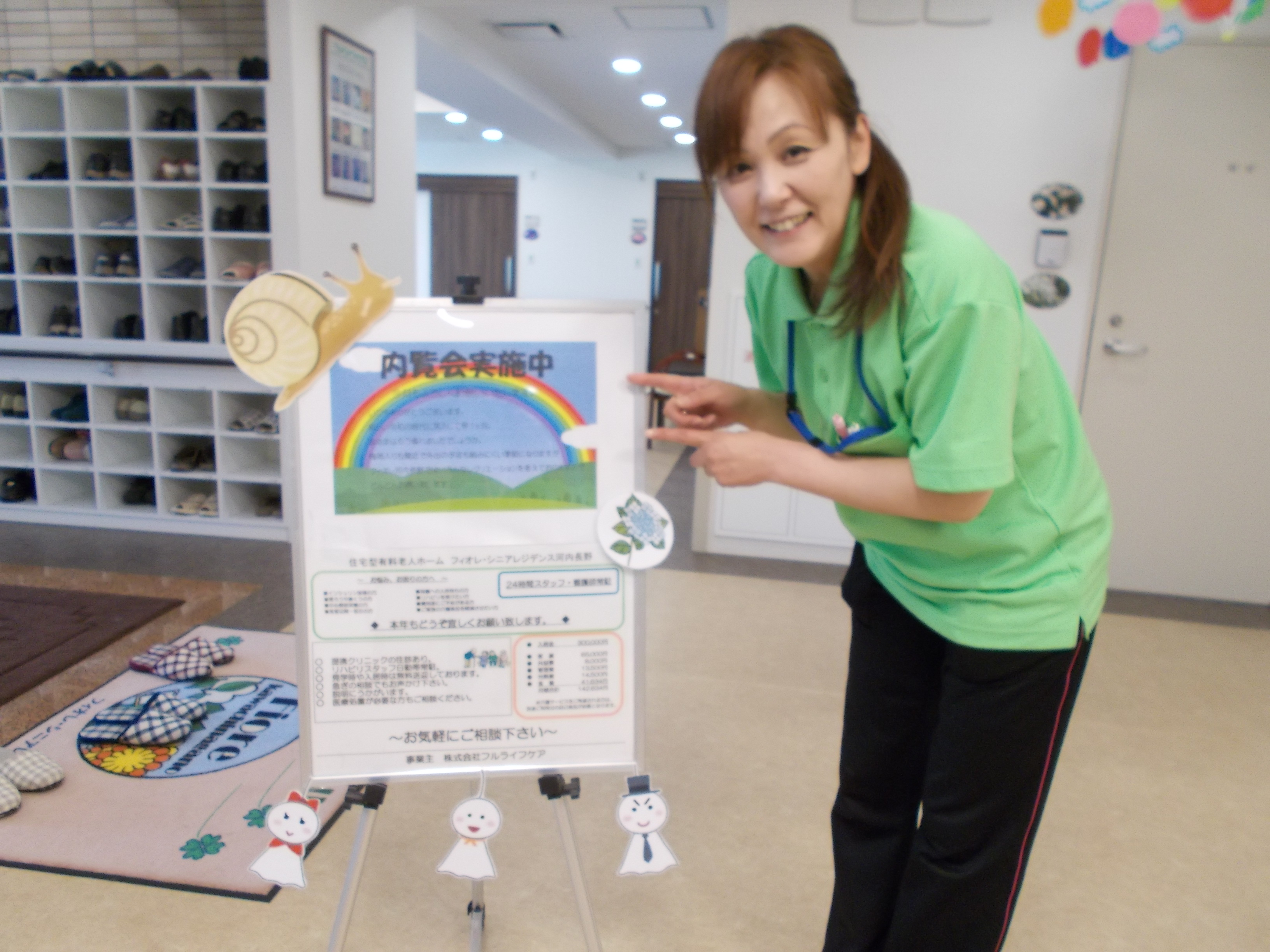 今日は玄関の案内板と1Fのこころ君を6月仕様にバージョンアップしました♬
