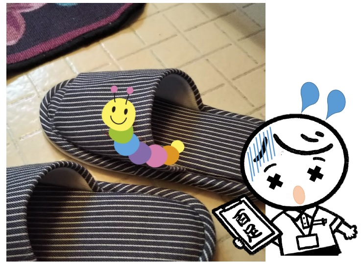 今朝、トイレのスリッパに大きなムカデが居座っていて