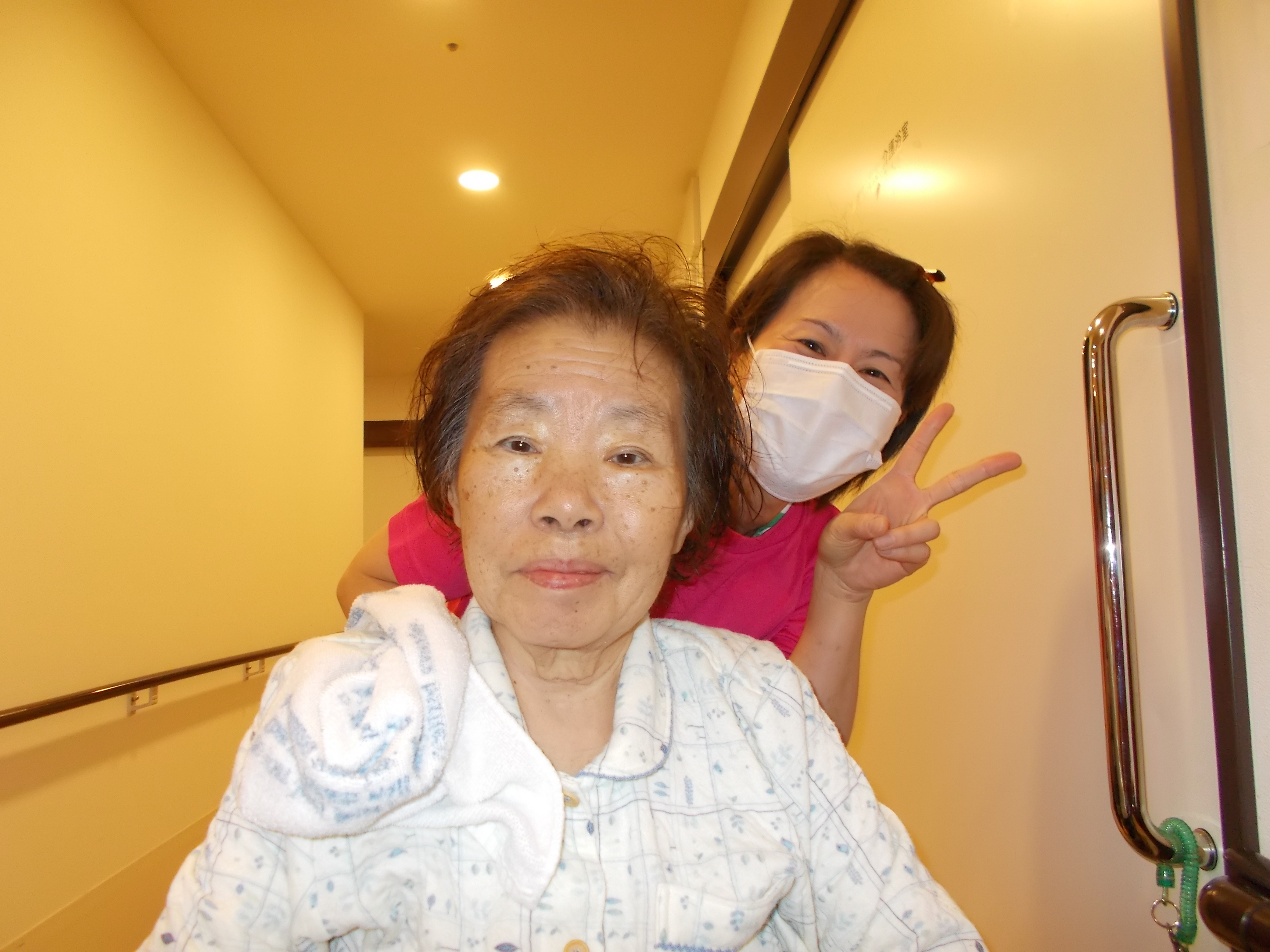 お風呂上がりであまりにスタッフと楽しそうにお話しているので