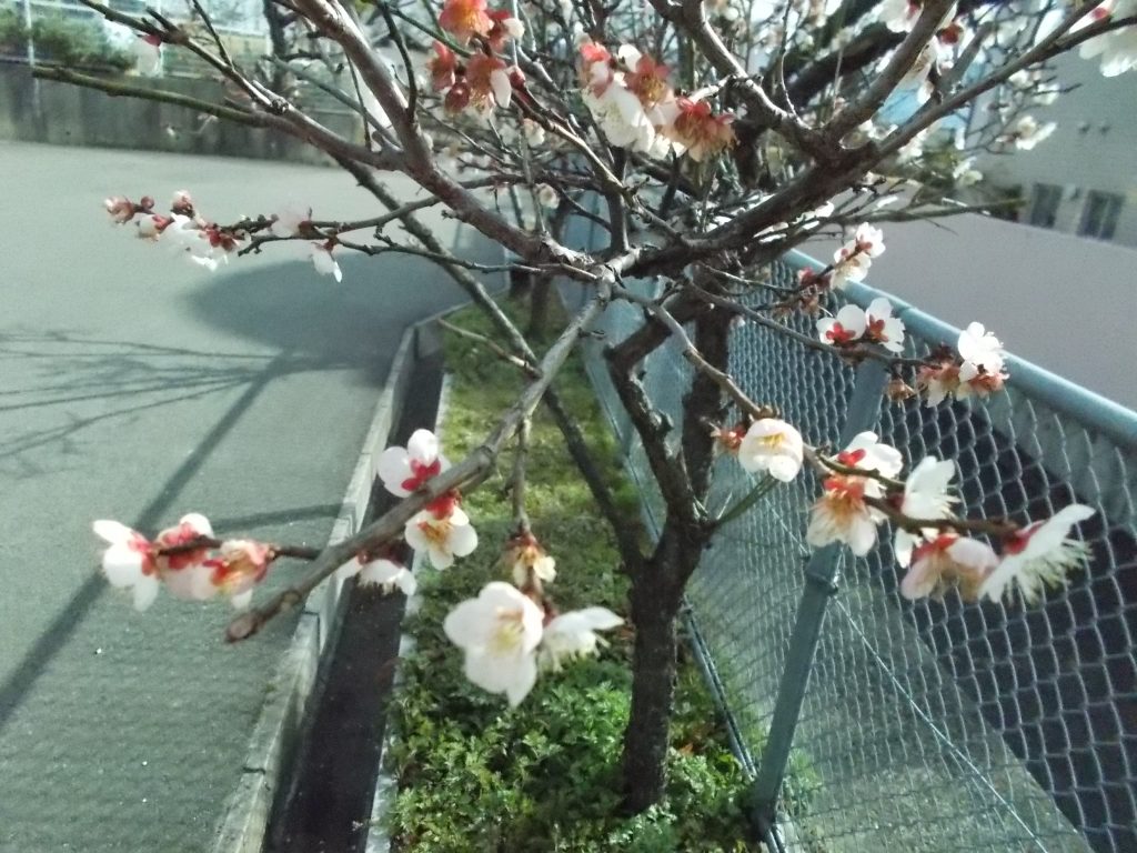 駐車場の梅の花も少しずつ咲いてきています。